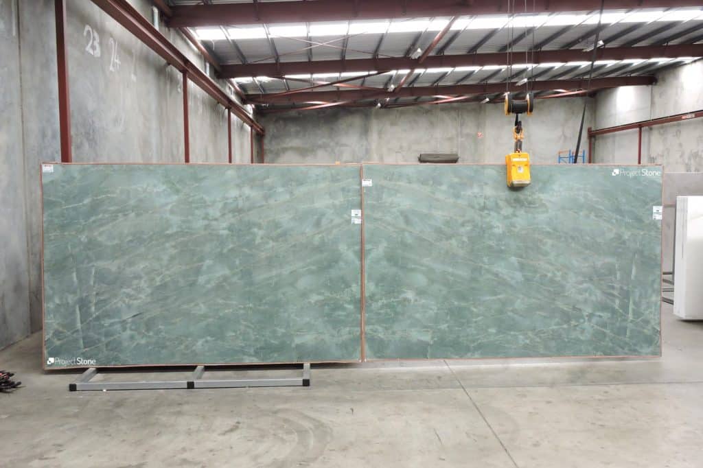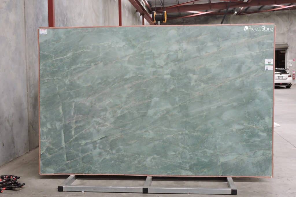Emerald Quartzite is an exclusive stone from Brazil which has just been added to our range. With it’s translucent like bright green colour it is reminiscent of its’ namesake, Emerald Gemstone. Combined with subtle hints of rusty gold and plum red veins this stone is a stand-out. It has already caught the eye of architects and interior designers due to its luxurious feel that brings light and excitement to any space. With the bonus of being a quartzite it is a durable stone making it suitable for a variety of interior and exterior applications.